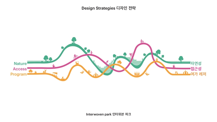 Het plan The Weaves, dat MVRDV samen met de Koreaanse bureaus NOW Architect en Seoahn Total Landscape Architecture opstelde, moet het natuurlijke karakter van het gebied herstellen. Daarnaast worden de toegankelijkheid en aantrekkelijkheid voor het publiek vergroot, dankzij de realisatie van wandel- en fietspaden en attracties als een uitkijktoren en een pier.