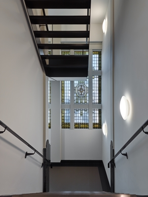 In de steeg is een nieuwe entree gesitueerd, die de bovenste vier verdiepingen van het warenhuis ontsluit, waar nu hoogwaardige kantoorruimten zijn ingericht. Een vide uit het ontwerp van Caron is hersteld, voorzien van een nieuw daklicht en vormt nu het centrale punt van de kantoren.