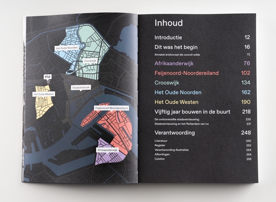De wijken die in het boek worden belicht, zijn de Afrikaanderwijk, Feijenoord-Noordereiland, Crooswijk, het Oude Noorden en het Oude Westen. Er is aandacht voor de specifieke context en ontwikkelingen, waarbij ook de rol van architectuur en architecten aan bod komt.