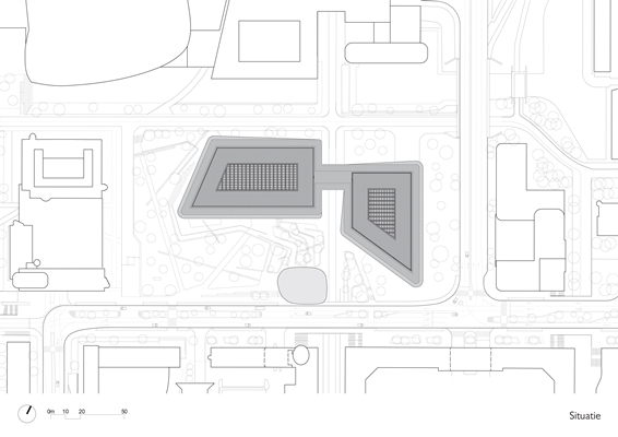 Het gebouw is met het interieur en het omringende park als een geïntegreerd geheel ontworpen. Benthem Crouwel heeft het pand naar de rand van het perceel geschoven, waarmee het bureau een grote groen zone voor het gebouw mogelijk heeft gemaakt. Die is door