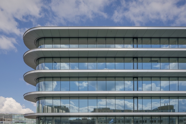 Het kantoorgebouw bestaat uit twee volumes van elk vijf verdiepingen, waarbij een glazen luchtbrug de bovenste vier niveaus verbindt. De gladde, gebogen gevels met verdiepingshoge ramen geven het gebouw een vriendelijke en toegankelijke uitstraling, waaraan ook de alzijdige oriëntatie bijdraagt. De luifels aan de gevel die rond het hele gebouw strekken maken de twee volumes tot een visuele eenheid; tevens dienen ze als zonneschermen.