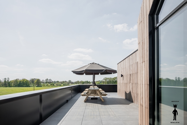 De ‘huizen’ zijn gematerialiseerd in hout en kunnen door de gebruikers naar wens ingezet worden als kantoorruimte, vergaderruimte of kantine. De dakterrassen vormen daarbij natuurlijk de ideale plek voor ontspanning voor het personeel.