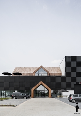 Mies Architectuur ontwerpt bedrijfspand in fonkelend zwart
