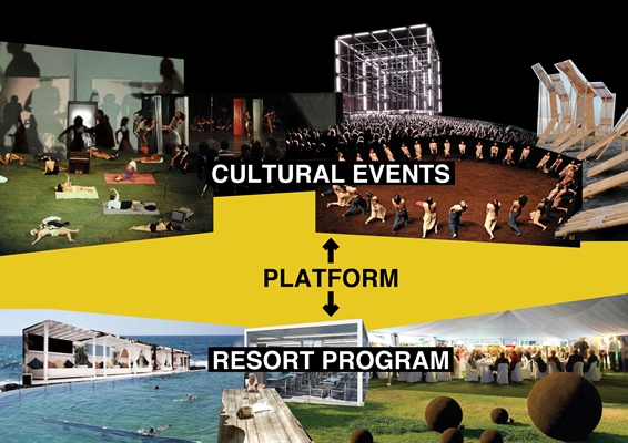 Een belangrijke rol hierin speelt de grote binnenplaats op het maaiveld. Deze publiek toegankelijke ruimte, die in directe verbinding staat met het strand, gaat fungeren als plek waar evenementen als tentoonstellingen en festivals plaatsvinden, maar ook dagelijkse ontspanningsactiviteiten. Inspiratie voor het ontwerp is opgedaan uit typisch Balinese binnenplaatsen, aldus