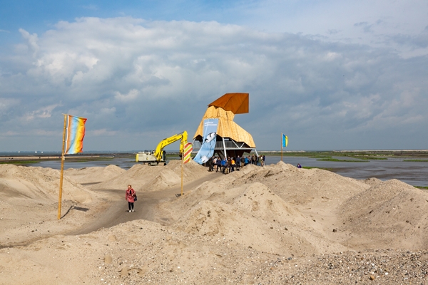 Uitkijktoren De Steltloper tijdens de opening van de Marker Wadden in 2018