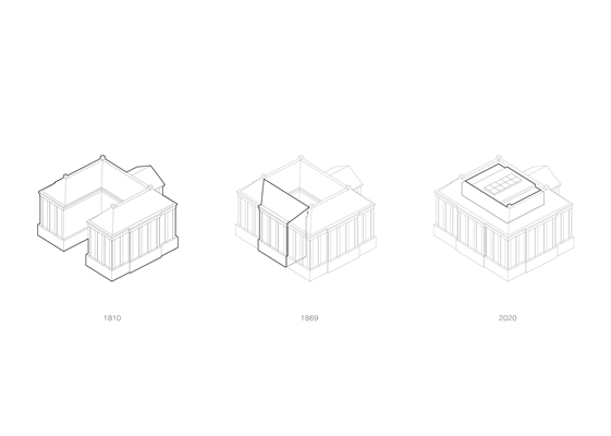 Het stadhuis vanaf zijn oorspronkelijke U-vorm tot de toekomstige situatie met het nieuwe dakvolume