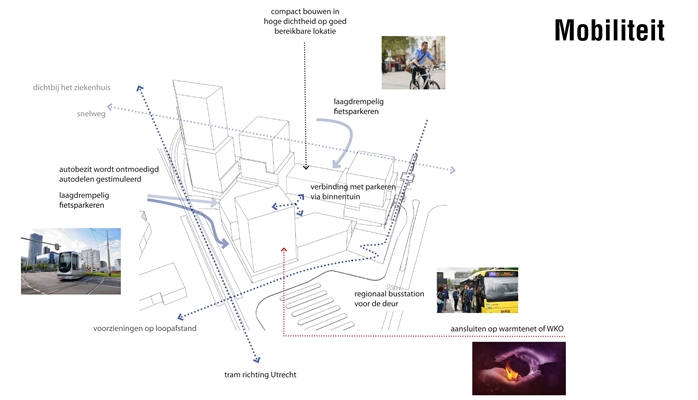 Slimme mobiliteitsoplossingen zoals het inzetten van deelauto’s en het weloverwogen ontsluiten van fietsparkeervoorzieningen in het blok, alsmede de aansluiting op het openbaar vervoer (sneltram en bus), zorgen voor optimale bereikbaarheid en toegang tot voorzieningen.
