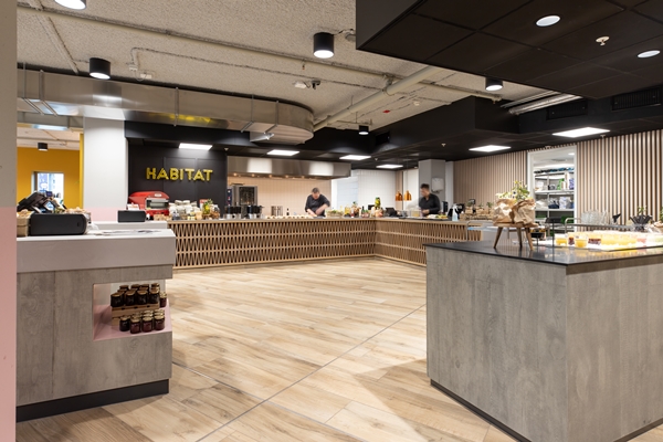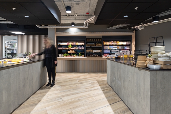 Aan de food court grenst een gebied voor een kort verblijf, een plek voor een snelle maaltijd in een gevarieerd landschap aan zitplekken. Aan de andere zijde bevindt zich ruimte voor langer verblijf; hier bevindt zich het merendeel van de (in totaal 250) zitplekken. De inhammen in het pand heeft Ditt. hier gebruikt om meer intimiteit en verscheidenheid aan zithoeken te bieden.