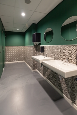 Het totaalconcept ‘urban jungle’ is in de vormgeving aangehouden. De ontwerpers hebben een combinatie nagestreefd van ‘stedelijke materialen’ en natuurlijke materialen en invloeden. Het stedelijke karakter, legt Ditt. uit, komt naar voren in de onbewerkte poeren in de entreehal en het ruwe beton van de kolommen.