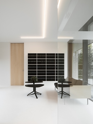 Het interieur van het notariaat moest een minimalistische eenvoud en rust uitstralen. Daartoe hebben de architecten wit als hoofdkleur gebruikt. De witte gietvloer in combinatie met accenten in essenhout, de verdiepingshoge deuren en het elegante meubilair creƫren samen een stijlvolle omgeving, leggen de architecten uit.
