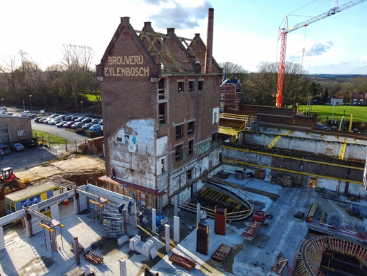 Een voormalige brouwerij in het Vlaams-Brabantse dorp Schepdaal krijgt een herbestemming als woon- en commerciƫle ruimte. In de combinatie van verbouwing en nieuwbouw heeft