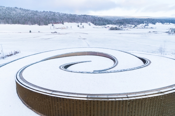 Als de veer van een uurwerk ligt het Musée Atelier Audemars Piguet half in een helling bij het Zwitserse dorp Le Brassus. Het spiraalvormige gebouw is ontworpen door