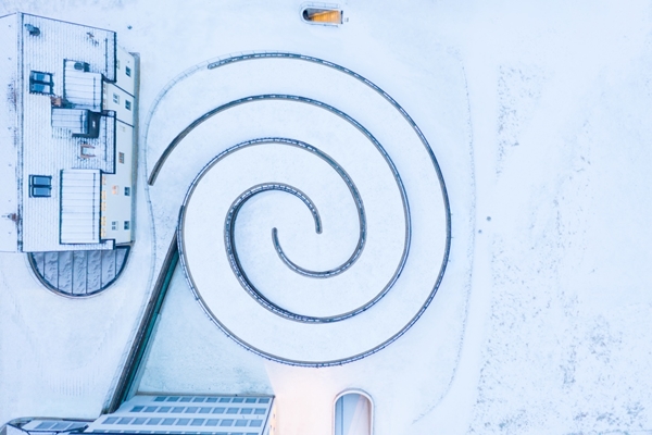 De glazen wanden lopen met de klok mee naar het midden van de spiraal, waarna ze in tegengestelde richting terug voeren. “De bezoekers bewegen zich door het gebouw zoals ze de veer van een uurwerk zouden volgen”, legt BIG uit.
