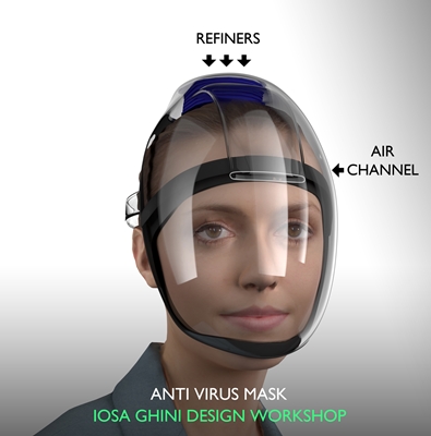 Mensen willen en kunnen niet continu binnenshuis blijven; ook de behoefte aan sociaal contact groeit. Iosa Ghini wil een masker ontwerpen dat het mogelijk maakt om in deze periode elkaar te ontmoeten en tegelijk te beschermen tegen virusinfecties. Het masker moet transparant zijn, zodat we elkaars gezicht kunnen zien; tegelijk schermt het zowel mond en neus als de ogen af.