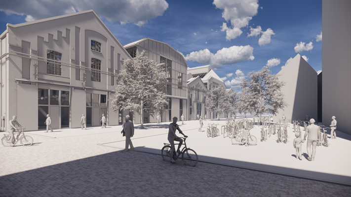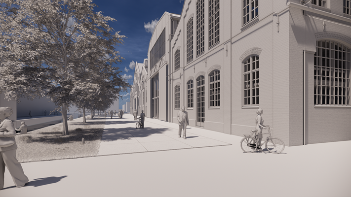 De oude spoorlijn die in het verleden de verschillende hallen met elkaar verbond, krijgt opnieuw een verbindende betekenis, meldt Braaksma & Roos. Dat gebeurt in de vorm van een straat die de hallen doorkruist, waarmee het complex een directe aansluiting krijgt op de wijk. Met verschillende publiekstoegankelijke functies en lokale horeca moet het complex ‘een essentieel onderdeel van het lokale stedelijke weefsel’ worden.