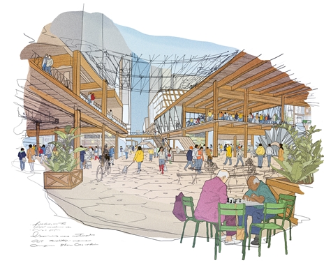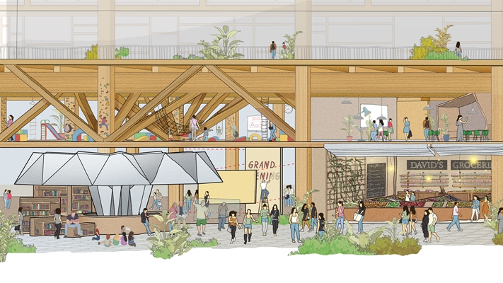 De gebouwen zouden er volledig van lokaal hout worden gerealiseerd, de publieke ruimtes zouden modulair en flexibel in te vullen zijn en de bestrating was verwarmd en bovendien voorzien van ook al modulaire platen. Verder zouden robots worden ingezet voor het ophalen van afval en moesten automatisch uitschuifbare luifels bewoners beschermen tegen neerslag.