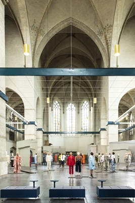 Het inrichtingsontwerp brengt duidelijk de functie van de kerk als tijdelijke expositieruimte voor hedendaagse kunst en ontwerp tot uitdrukking. Tegelijkertijd blijft de bijzondere sfeer van het gotische interieur onaangetast. Uitgangspunt was dat het museum te gast is in het kerkgebouw, legt Kraft architecten uit.