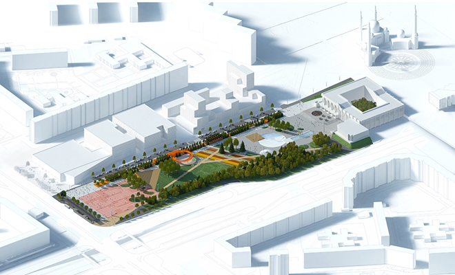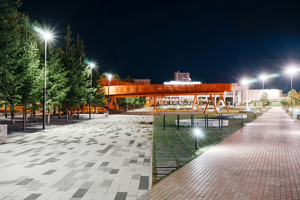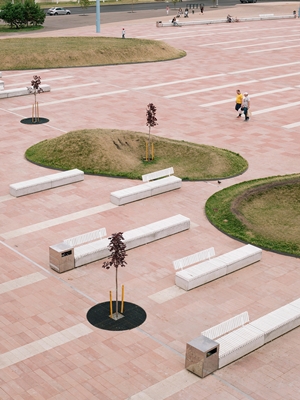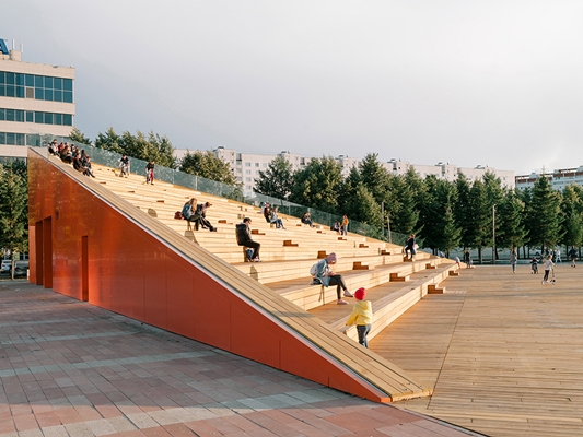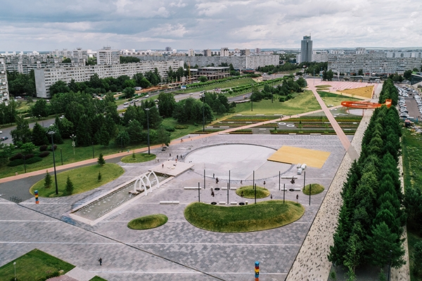 heeft het ooit belangrijkste plein van de stad Naberezjnye Tsjelny in Rusland nieuw leven ingeblazen. Het monotone Azatlyk-plein is opgedeeld in een aantal sferen, met verschillende functies en vormgeving.