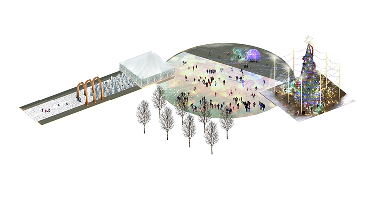Ook is elk plein voorzien van beschutting tegen de zon en de sterke wind, door het toevoegen van heuvels en bomen van lokale soorten, zoals linde, rode esdoorn en blauwspar. Daarbij hebben de architecten het meeste van het al aanwezige groen behouden, met het oog op het bestaande ecosysteem en het karakteristieke landschap.