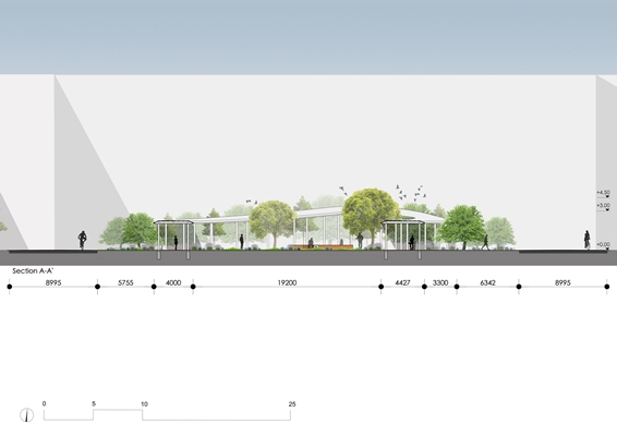 Wat betreft de groene gebieden stellen de architecten voor de bestaande bomen te behouden en tevens de diversiteit vergroten om de algehele ecologische omgeving te verbeteren. De vergroening hebben de architecten uitgewerkt met twee benaderingen: voor het onderwijsgebied (lager, opener) en voor het verblijfsgebied (hoger, dichter voor meer privacy).