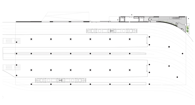 De architecten bedachten uiteindelijk een andere oplossing, mede om het verhoogde en openbaar toegankelijke maaiveld van Het Platform een uitnodigender uitstraling te geven. De constructie van Het Platform is geïntegreerd in de eerste verdiepingen van het gebouw zelf en de dikte van de plaat tussen het gebouw en station is gereduceerd tot vijftig centimeter. Dit maakt de publieke ruimte op het verhoogde maaiveld ook beter toegankelijk vanaf het aangrenzende stationsplein.