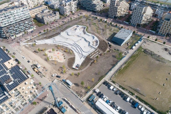 Deze maand is op het Zeeburgereiland in Amsterdam het grootste betongesmeerde skatepark van Nederland geopend. De door het Deense