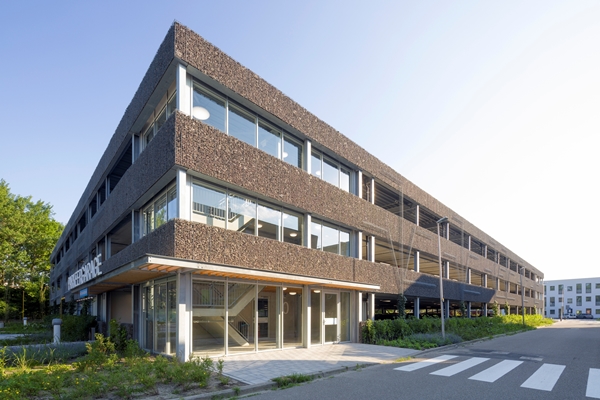 Zo bestaat de gevel van de garage uit gaaspanelen, die zijn gevuld en lavastenen. Deze ‘luchtige’ stenen zorgen voor een goede geluidsabsorptie. Daarnaast is levend groen toegepast, dat eveneens bijdraagt aan geluiddemping en tevens de luchtkwaliteit verbetert en kansen biedt voor grotere biodiversiteit, aldus EGM.