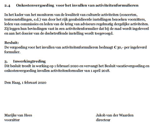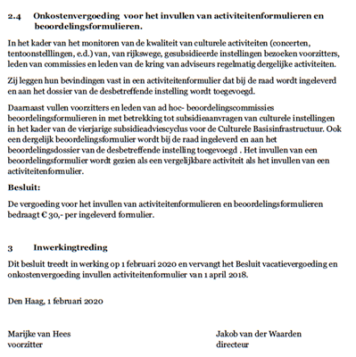 Kortom, op alle fronten een vernietigend oordeel. Nog los van het direct afschieten van het idee om op de twee lege kantoorverdiepingen een hotel-restaurant te beginnen, en de snijdende slotopmerking dat “de aanstelling van een zakelijk directeur naast de artistiek-inhoudelijk directeur […] niet automatisch tot een verbetering van de kwaliteit van de activiteiten en het toezicht leidt.”
