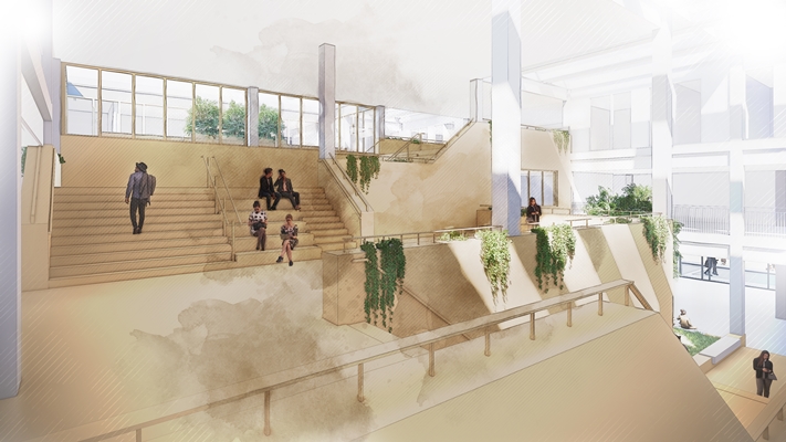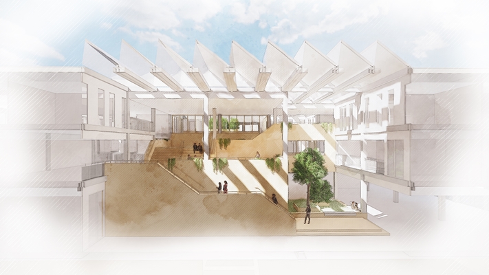 de architectenselectie gewonnen met het ontwerp van een groen, licht en flexibel gebouw. Het architectenbureau heeft impressies van het ontwerp naar buiten gebracht.