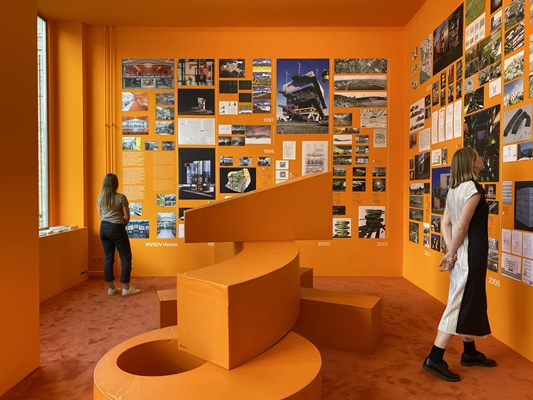 De expositie MVRDV Haus Berlin toont werk uit die hele periode van de Europan tot en met de lopende projecten. De inrichting van de ruimte weerspiegelt de sfeer van het hoofdkantoor in Rotterdam, legt het bureau uit. Niet alleen qua verschijning, met het kenmerkende gebruik van één kleur voor alle muren, maar ook in toegankelijkheid, aldus MVRDV.