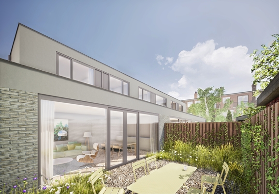 heeft het ontwerp gemaakt voor beide deelprojecten: drie patiowoningen in het binnengebied en een appartementengebouw aan de straat.