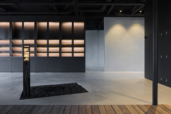 Zowel in het interieur als buiten zijn delen van de vloer open gezaagd en gevuld met inktzwarte lavabrokken als symbool voor zwartgeblakerde grond. Deze openingen bevatten objecten die zijn gebruikt in de Tweede Wereldoorlog en direct te maken hebben met de gepresenteerde verhalen. Door middel van interactieve media krijgt de bezoeker extra informatie aangeboden.