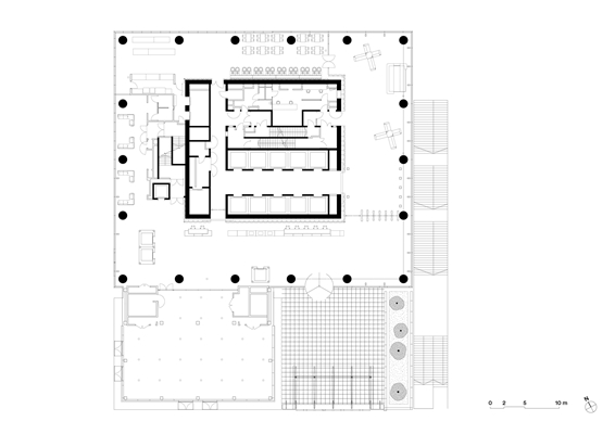 De hoogste verdiepingen, in het bovenste glazen prisma, biedt plaats aan ontvangst- en ontmoetingsruimten. Ook heeft Valode & Pistre hier bijzondere open ruimten, in de vorm van enorme vides met panoramische uitzichten gecreëerd. Grote kassen dragen bij aan de uitstraling èn de milieuprestaties van het gebouw.