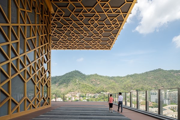 Deze ‘sky decks’ bieden de gebruikers uitzicht op de omgeving, waar een mix van hoogbouw, andere moderne architectuur en meer traditionele bebouwing is opgenomen in een bergachtige en groene context. Dankzij het vele glas in de gevel hebben de kantoormedewerkers ook vanaf hun werkplek ruim zicht op het tussen de bergen en een baai gelegen stadsdeel Shekou.
