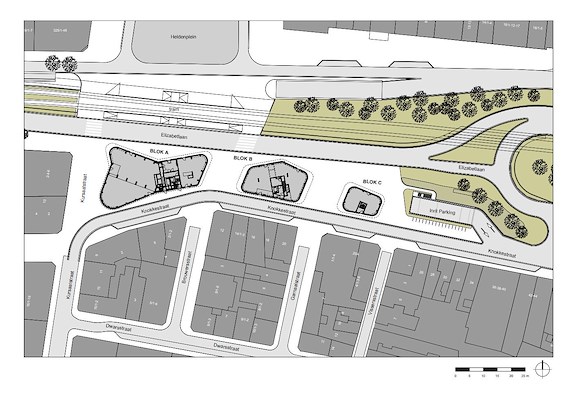 Het project behelst ongeveer vijftig woningen en moet in 2023 klaar zijn, meldt Neutelings Riedijk Architecten.