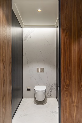 In de nieuw gemaakte ‘stijlkamers’ is gekozen voor een verborgen oplossing voor de installaties in de wanden en plafonds, om het klassieke karakter van deze ruimtes te ondersteunen.