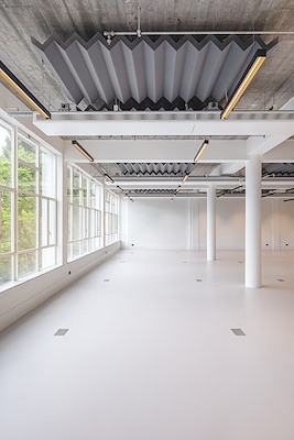 Door middel van een zorgvuldig afgestemd installatieplan zijn kanalen, inductie-units, goten, verlichting en sprinkler geïntegreerd in een totaal ontwerp, meldt Heyligers.. Akoestiek is opgelost door middel van speciaal gemaakte akoestische panelen in zigzagvorm om zo veel mogelijk absorptie-oppervlak te realiseren.