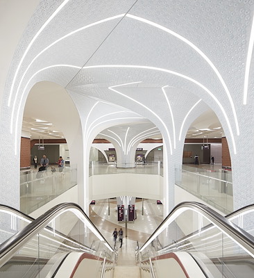 Er zijn typerende Qatari-ornamenten en materialen toegepast, die bijdragen aan een visuele onderverdeling van de grote binnenruimten en optische sturing van voetgangers in de juiste richting. De geïntegreerde lichtlijnen versterken de beleving, fungeren als bewegwijzering en dragen bij aan de prettige beleving van het metronetwerk, legt het architectenbureau uit.