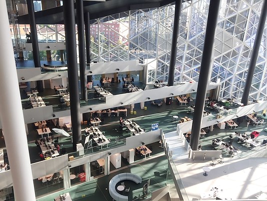 Het atrium heeft een diagonale opzet, met gespiegelde terrassen aan weerszijden. Daarnaast zijn er bruggen aanwezig om de terrassen te verbinden of extra werkruimte te creëren. Ook het publiek is welkom in het gebouw; zij kunnen via een brug annex uitkijkplatform de activiteiten in het atrium gadeslaan. Verder zijn er voor bezoekers een rooftopbar en faciliteiten bij de lobby op de begane grond (waaronder ruimtes voor evenementen en tentoonstellingen) aanwezig.