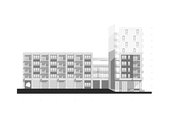 Deze ontwikkeling bestaat uit drie bouwblokken met een gevarieerd programma van sociale woningbouw, koopappartementen, zorgwoningen, commerciële ruimten, horeca, een supermarkt en een hotel, vertellen de architecten. Westerschans 1A vormt de eerste fase en bestaat uit 83 sociale huurwoningen, 13 kadewoningen, een grote supermarkt en winkelruimte.