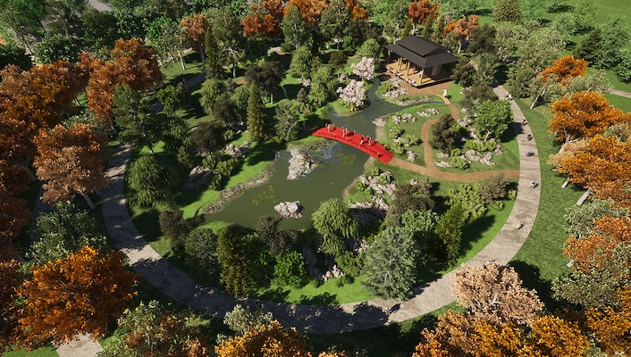 is verantwoordelijk voor het ontwerp van het 36 hectare omvattende stadspark, dat vermaak zal bieden aan mensen van alle leeftijden. Hiertoe is het park opgedeeld in 26 zones, met elk een eigen functie en sfeer.