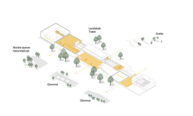 Het museum komt te staan aan de grootste binnenlandse delta van Noord-Europa, aan de oevers van de rivier Glomma, op dertig minuten van Oslo. Het ontwerp Langhuset contrasteert met zijn strakke, geometrische vorm met de natuurlijke omgeving. Een grote opening in het volume vormt een kader voor hetzelfde landschap en markeert de ingang van het museum.