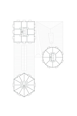 De stedelijke plint, waarin de commerciële functies, kantoren en horeca worden gerealiseerd, is van een licht natuursteen met grote gevelopeningen. De kronen van de woontorens zijn ontworpen als een familie van drie expressieve dakbeëindigingen die de functie van woongebouw symboliseren en het project actief laten meedoen in de Haagse skyline, zoals de architecten het verwoorden.