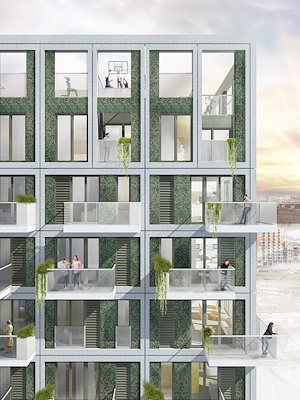 en maakt deel uit van een nieuwe wijk met 2.700 woningen. De toren krijgt een gevel die deels is ingelegd met groen gerecycled glas.