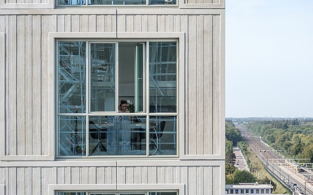 Tribunevormig gebouw van MVRDV met zicht op het hart van Strijp-S