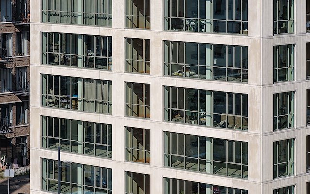 De woningen in met name het lage deel hebben een eenzijdige oriëntatie. De vensters zijn daarom groot, terwijl de kozijnen juist opvallend rank zijn gemaakt. Hun groene kleur verwijst eveneens naar het industriële verleden van het gebied, meldt diederendirrix.