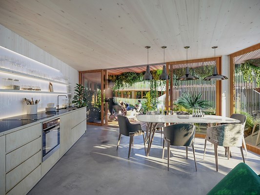Met geprefabriceerde modules uit hout en andere biobased materialen kunnen stedelijke clusters worden opgebouwd. De modules zelf zijn flexibel en kostenefficiënt te realiseren. Door een efficiënt gebruik van bronnen en de keuze voor materialen die CO