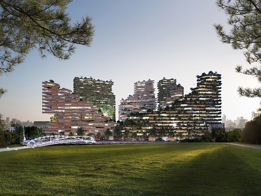 Verticale verbindingen lopen extern, zodat de wooneenheden en terrassen met elkaar zijn verbonden via een doorlopend lint van min of meer omsloten buitenruimten. De integratie van (lokale) flora en fauna in de gebouwen bevordert niet alleen het welbevinden van de bewoners, maar versterkt bovendien de biodiversiteit in het stedelijk weefsel.