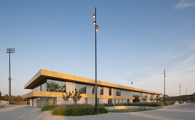 Met het aanleggen van de laatste twee velden is vorige maand de gezamenlijke accommodatie van de jeugdopleiding en amateurtak van Feyenoord in Rotterdam opgeleverd. Voor het nieuwe trainings- en wedstrijdencomplex op Varkenoord ontwierp