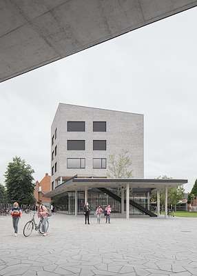 Twee nieuwe gebouwen door Abscis Architecten voor een scholenstraat in Poperinge